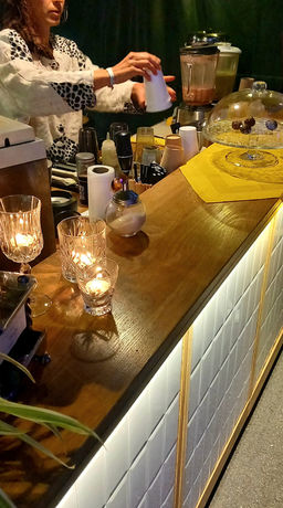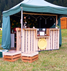 Festival an. Unser Herzstück ist die selbstgebaute ,,Maracujabar'', weil es an jedem Fest etwas Gutes & prickelndes auszuschenken gibt. Mit einer Länge von 2.60m als Doppelelement oder Einzelelement (1.30m x 0.90) auf Rollen eignet sich die Bar für Indoor sowie Outdoor Events (bedacht oder mit Zelt) Wir können verschiedene Getränke & Drinks wie Café, Espresso, Shakes, Cocktails und Smoothies anbieten. Wir besprechen mit euch gerne die Getränkeauswahl und übernehmen auch die Gestaltung der Getränkekarte. Wir sind im Sommer auch an diversen Musik Festivals unterwegs und bringen auch logistisches Gastro Knowhow mit.